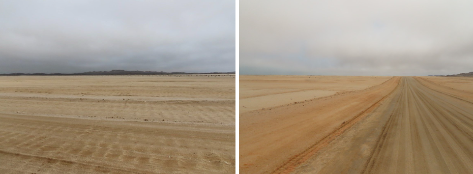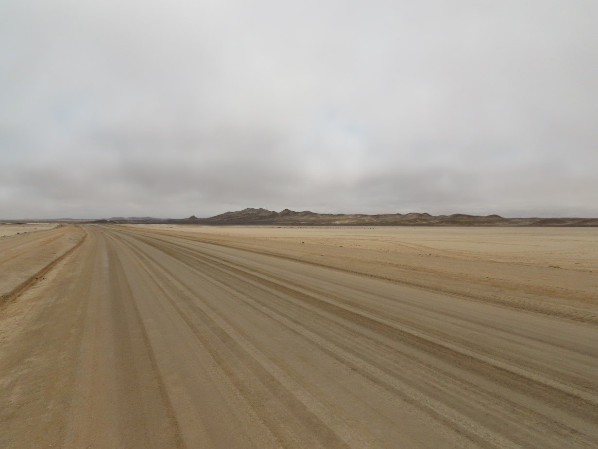 It was quite a unique, be it a weird, experience to sit there and 360 degrees around us there was nothing but sand and gravel and a few mountains/hills dotted around. By that time we must have been about 5 km from the main road, which runs alongside the ocean because we could hear the rushing of the waves all the way to our spot in the desert. Amazing!
