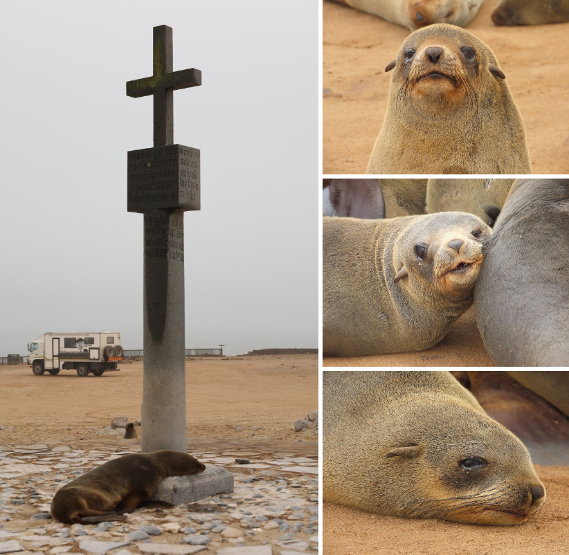 After our desert-brunch we drove our last few km’s on the sand and reached the main road again. About 20 or 30km further on we would get to the Cape Cross Seal Colony.